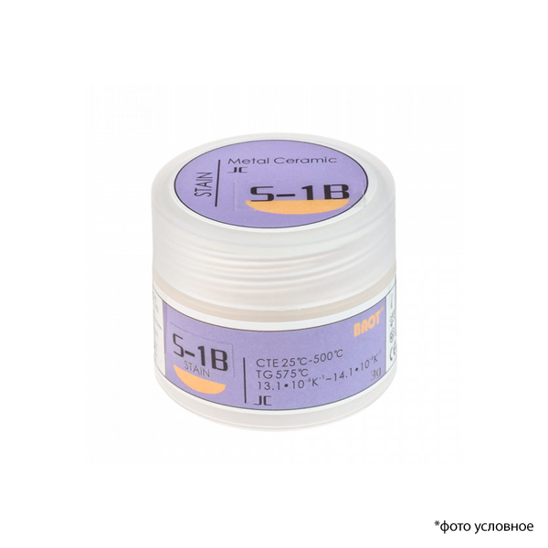 Stain S-1B краситель, цвет красно-желтый, используется при нанесении керамики BAOT на коронку. При использовании массы в качестве внешнего красителя смешивать с жидкостью для глазури и красителей.