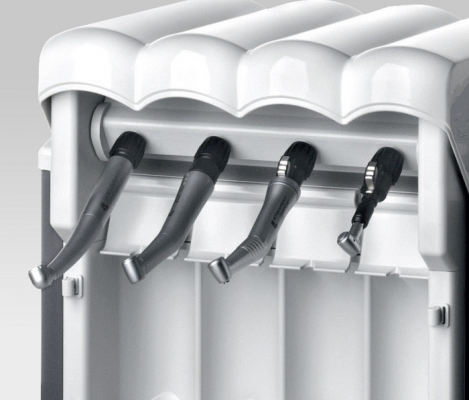 KaVo QUATTROcare® Plus 2124A - программно-управляемый прибор для чистки и смазки турбинных, угловых наконечников, а также головок к наконечникам. Прибор дополнительно подключается к источнику сжатого воздуха для дополнительной продувки спрей каналов и удаления излишков масла.