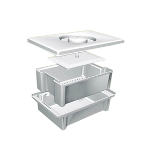 - Представляет собой емкость прямоугольной формы с перфорированным поддоном, с пластиной для погружения в раствор легких изделий, крышкой и карманами