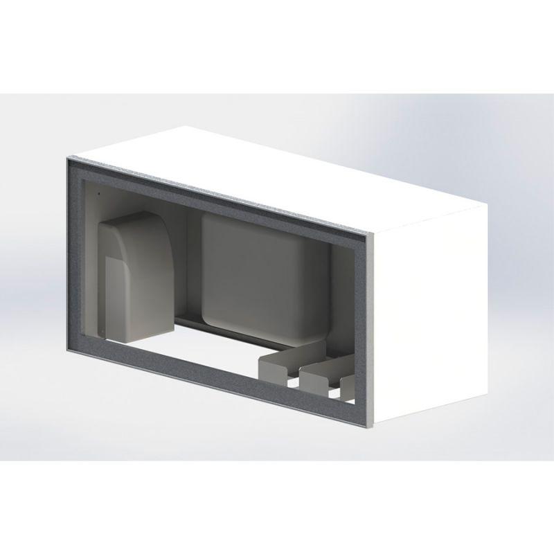 Оснащен двумя сенсорными дозаторами для жидких средств, диспенсером для бумажных салфеток и 4 кассетами под перчатки. Подъемная вверх дверка с матовым стеклом и механизмом плавного закрывания.