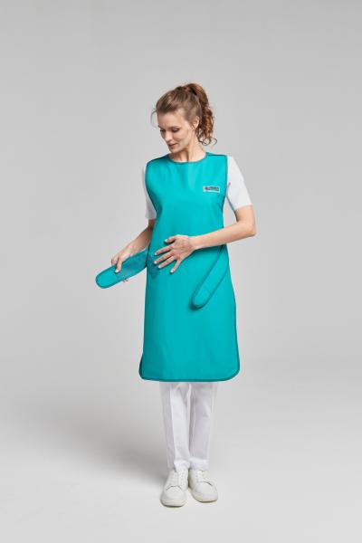 Фартук рентгенозащитный односторонний предназначен для защиты тела человека спереди от горла до голеней при рентгенологических исследованиях.